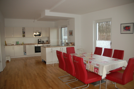 Unsere 2,5-Zimmer Wohnung mit 87,7qm bietet für Wohnen auf Zeit eine ideale Alternative zum Hotel. Sie verfügt über eine voll ausgestattete Wohnküche mit angrenzendem Ess- und Wohnbereich sowie Sofa, einen modernen SMART TV, Internet und Telefon. Das Schlafzimmer ist möbliert mit Komfortbett, Kommode und Kleiderschrank. Daran angrenzend liegt ein geräumiges Vollbad mit Badewanne und Dusche. Vom Eingangsbereich geht noch eine Gästetoilette ab. Eine große Terrasse mit Tisch und Stühlen steht zur Nutzung bereit, um die Nachmittagssonne in vollen Zügen geniessen zu können. Eine Waschmaschine gehört ebenfalls zur Ausstattung. Über einen Aufzug kann Wohnung und Tiefagarage barrierefrei erreicht werden.